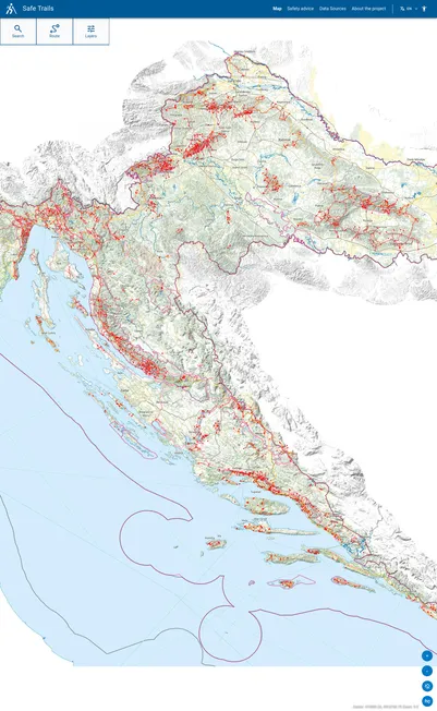Interactive map of the Republic of Croatia, is intended for hikers and excursionists. The application enables the creation of custom routes, searching and exploring terrains, trails, facilities, climbing areas, and peaks.